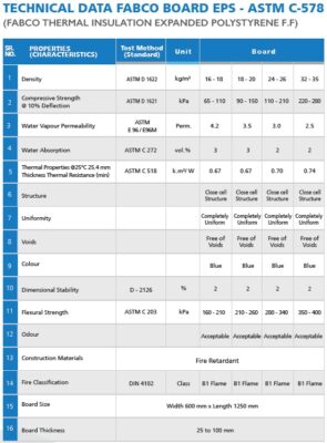 تتميز ألواح فابكو للأسقف بأنها ذو خلايا مغلقة تعمل علي عزل الرطوبة والصوت والحرارة بطريقة مثلى كما أنه يتوفر بشكل ألواح متداخلة الجوانب حتي يسهل تركيبه واحد مع الآخر بدون تسريب أي جزء من الحرارة ومعبأ في أكياس للحماية من أي أضرار أثناء النقل. تتميز الألواح العازلة للجدران بنفس المميزات التي توجد في الألواح العازلة للأسقف مع وجود فرق في الضغط .